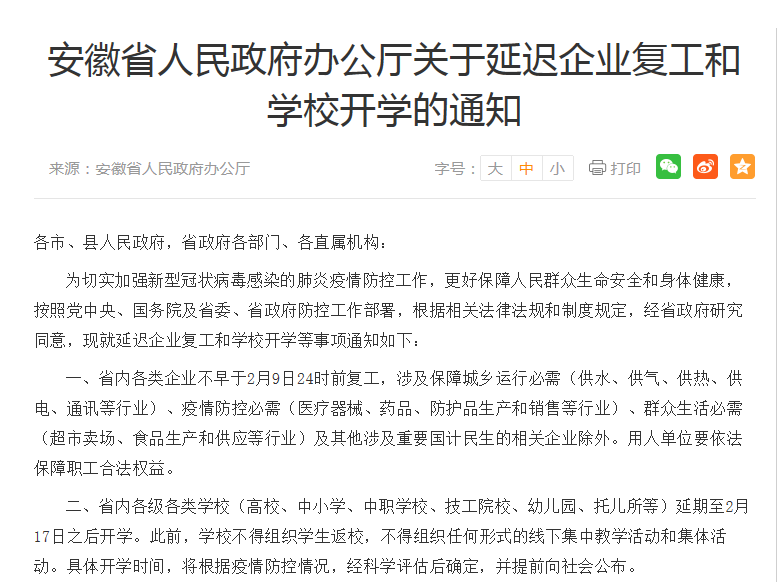 受新型冠状病毒感染疫情影响,1月29日,安徽省政府办公厅发布关于延迟企业复工的通知,要求省内各类企业不早于2月9日24时前复工。我司为响应党中央、国务院的号召,将复工日期延期为2月10日。与此同时,我司已启动疫情期间应急预案,成立临时应急小组,以处理应对客户存在的紧急项目需求,2月3-9日期间应急小组会第一时间做好针对性处理和服务,请及时与我司销售、项目部门协商合同计划和履约调整。全员防控,责无旁贷,也请您相信,我司定竭力配合、全力推进项目的实施,恳请贵司给予谅解和支持。