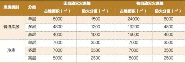 4.仓库占地面积和防火分区(仅供一般性参考,视具体情况而定)