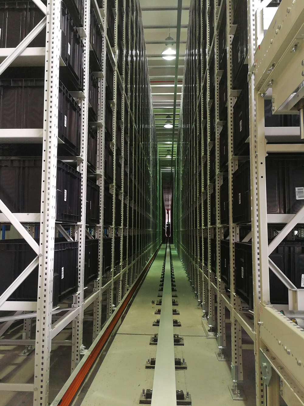 该项目分为常温库和恒温库两个区域,常温库采用林德窄巷道叉车接和中文电子标签接合模式,实现369托/小时的自动分拣选功能。恒温库包含托盘库和料箱库两部分。料箱库采用320m/min高速堆垛机配合18个拣选工位,实现1330箱/小时的拣选功能。